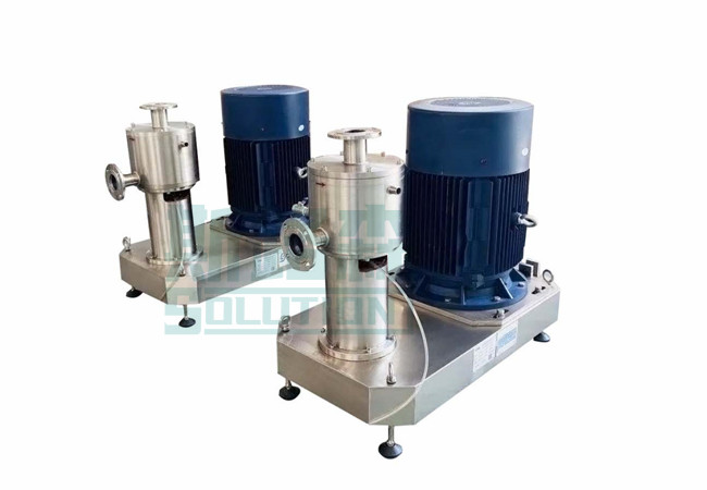 精密加工的混合工作头中的泵转子高速旋转将液体和固体物料压入转子/定子组件。